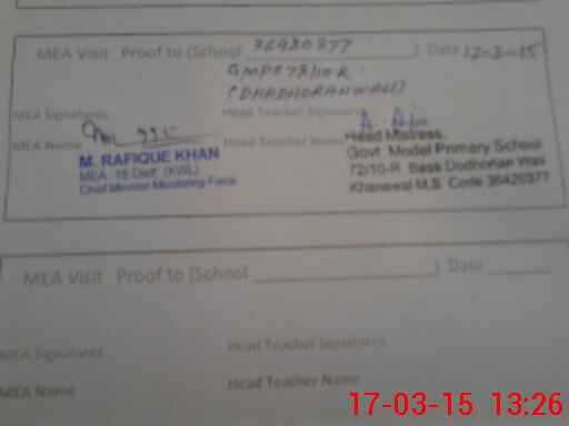 | EMIS Code: 36420377 | Name of School: GPS MODEL 72/10-R, DHORIYAN WALI, KHANEWAL | |||