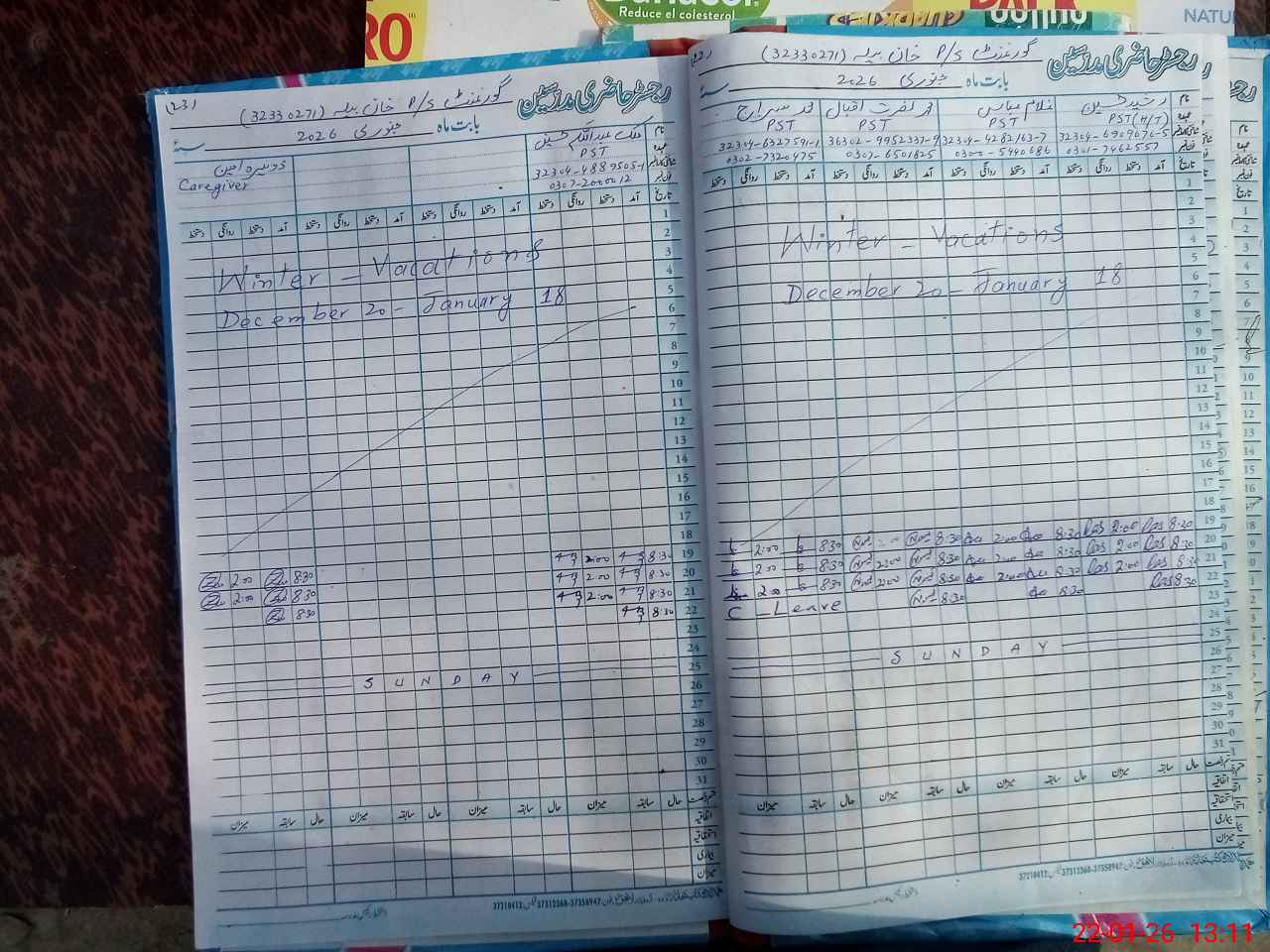 | CNIC | Full Name | Designation | R/C | Absence During Last Calender Month |