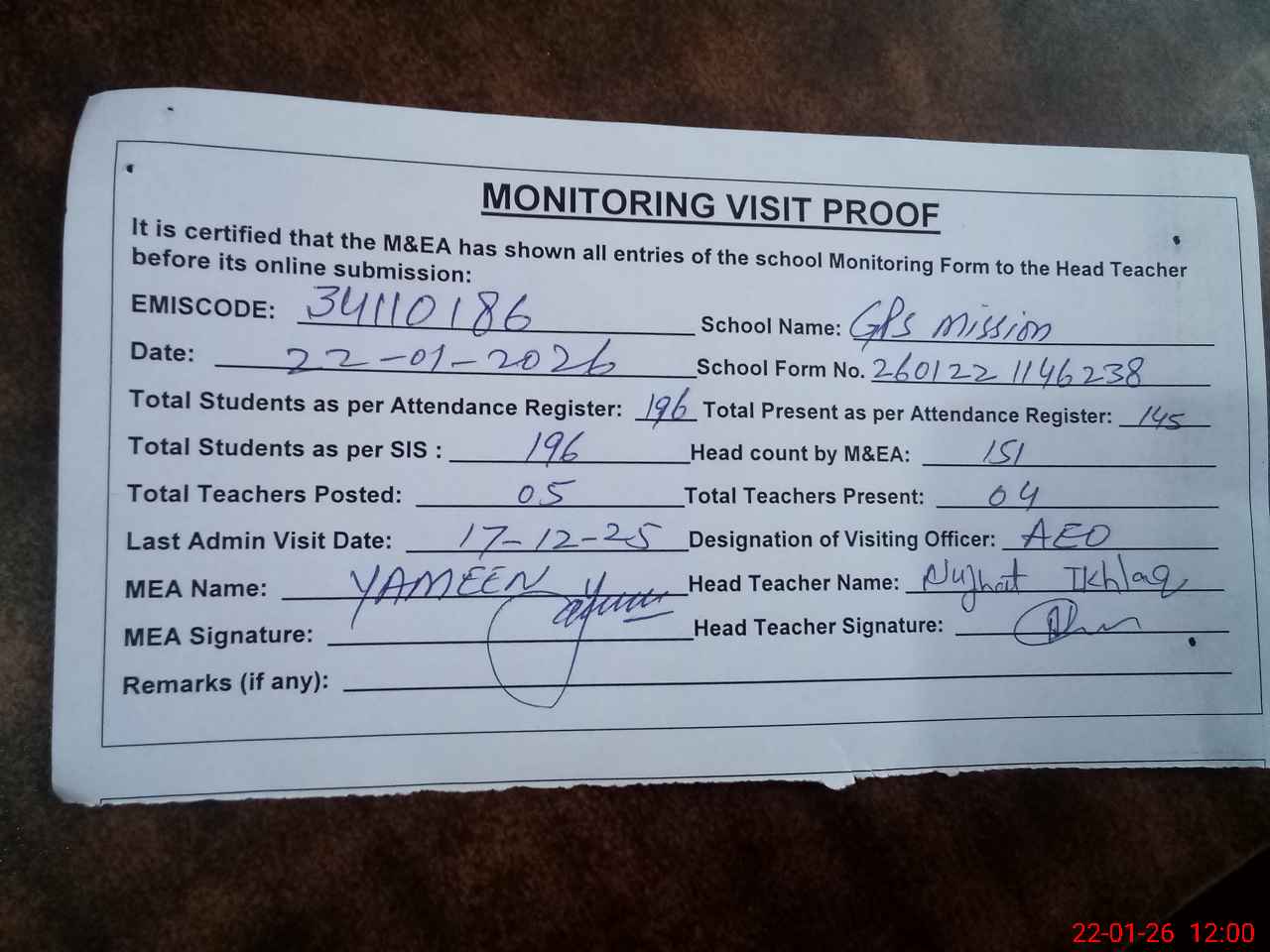 | EMIS Code: 34110186 | Name of School: GPS MISSION | |||