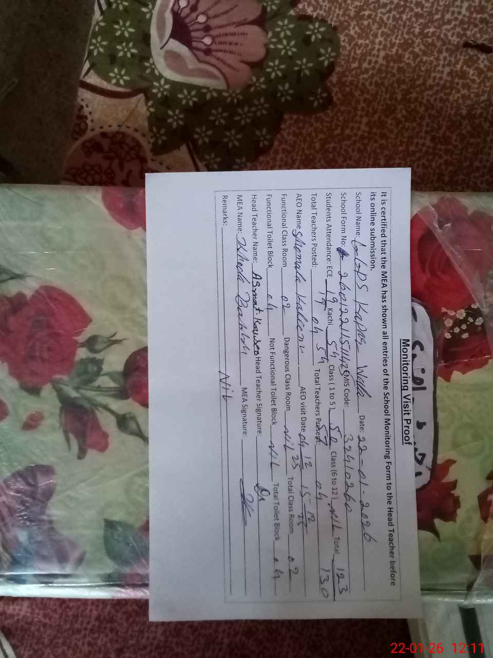 | EMIS Code: 32410260 | Name of School: GGPS KAPER WALA | |||