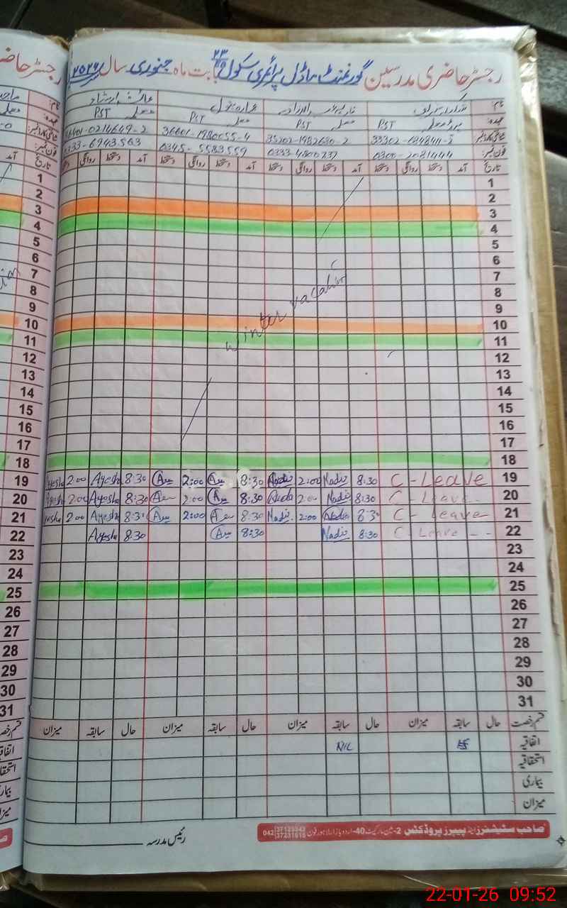| Name: AY**** IR**** Designation: (School Headmaster's/Headmistress's) PST Phone/Cell Number: 03**** |