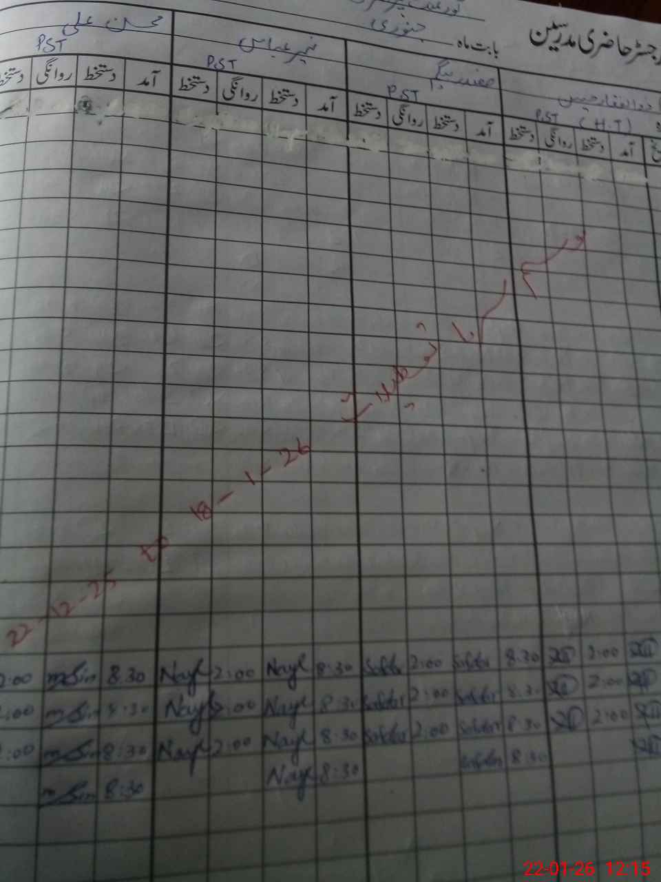 | CNIC | Full Name | Designation | R/C | Absence During Last Calender Month |