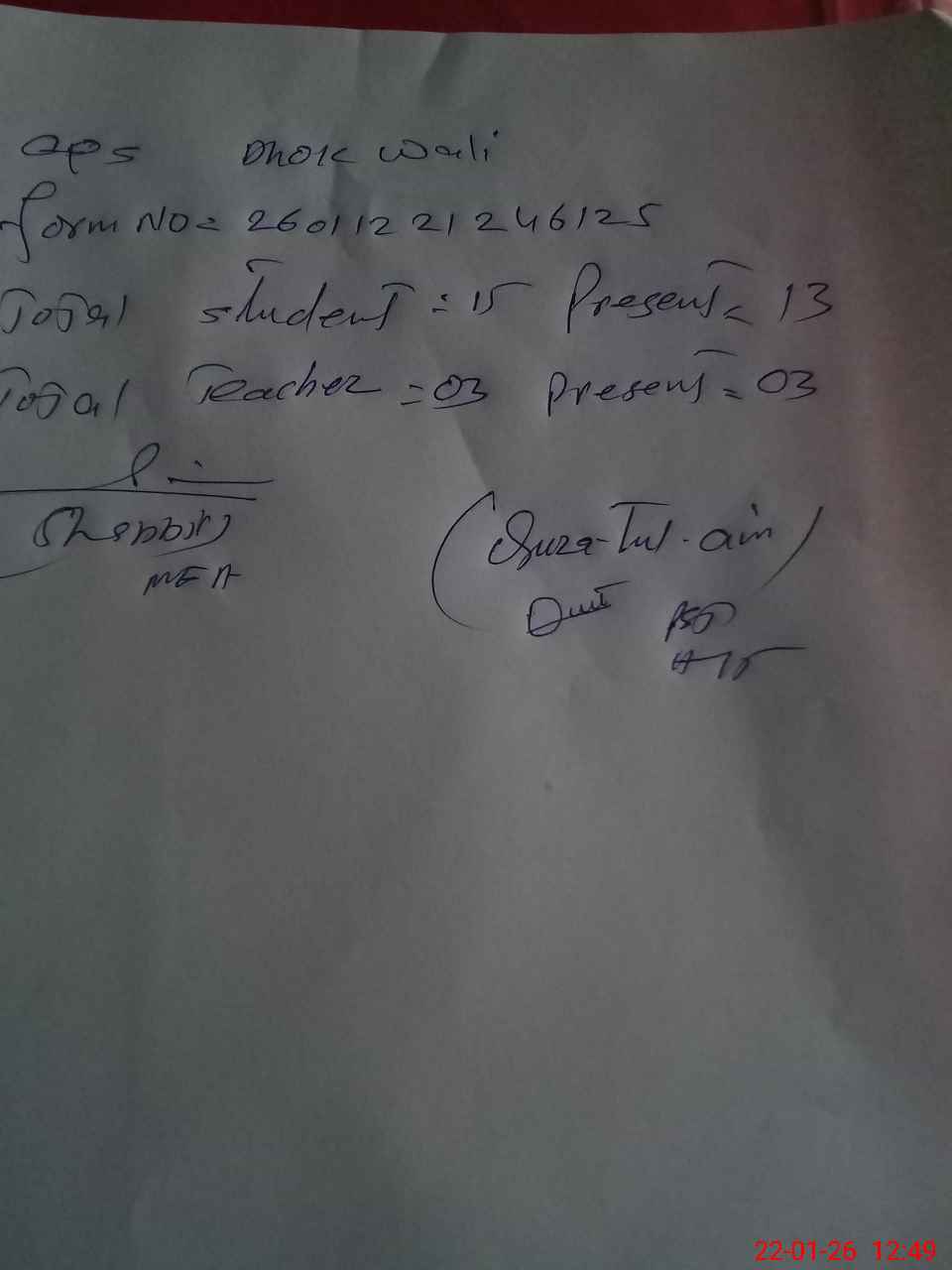 | Name: Am**** Ha**** Designation: (School Headmaster's/Headmistress's) HEADMISTRESS Phone/Cell Number: 03**** |