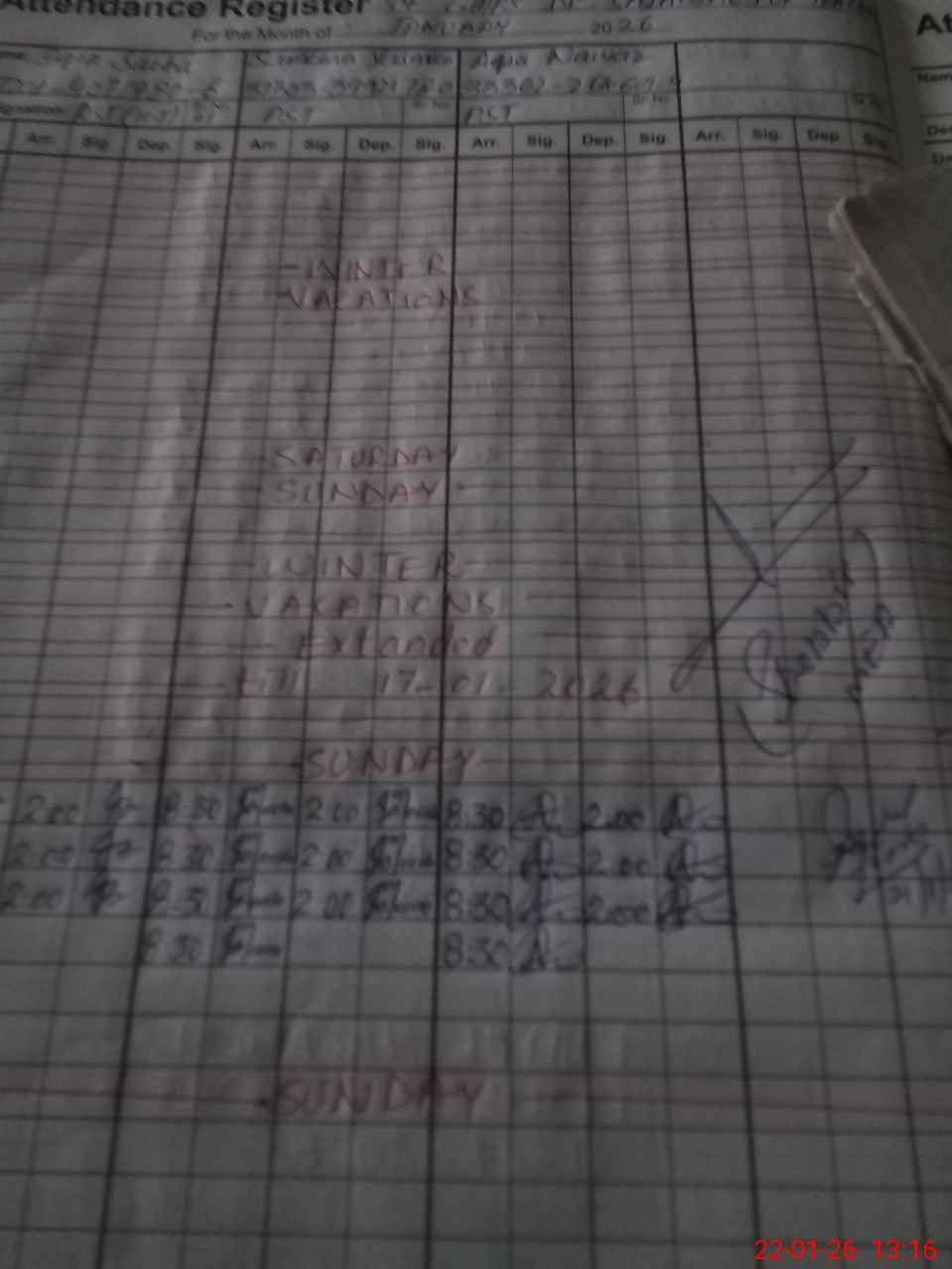 | Monitoring Date: 22-01-2026 | Start Time: 22-01-2026 12:50 PM | End Time: 22-01-2026 01:17 PM | Name of MEA: Sh**** Hu**** | |