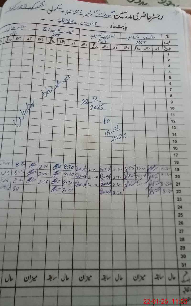 | Name: RU**** SH**** Designation: (School Headmaster's/Headmistress's) PST Phone/Cell Number: 03**** |