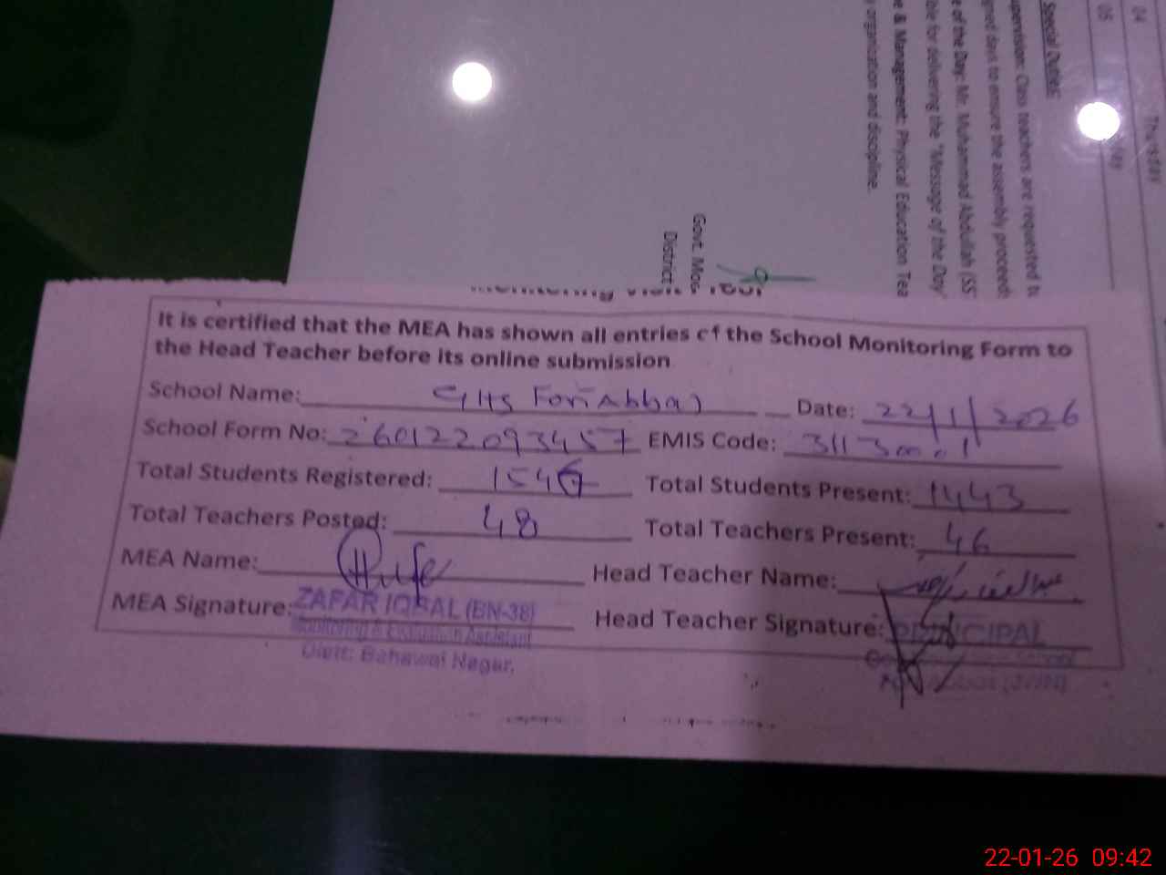| EMIS Code: 31130001 | Name of School: GHS FORT ABBAS | |||