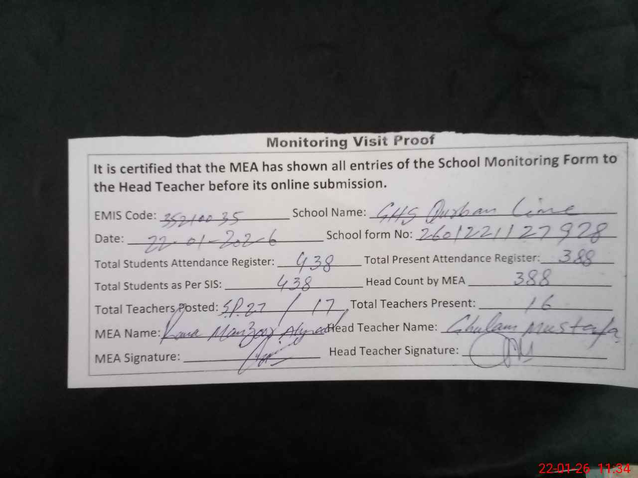 | EMIS Code: 35210035 | Name of School: GHS QURBAN LINE TEHSIL MODE TOWN | |||