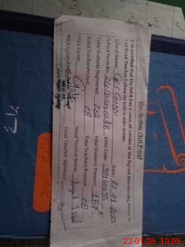 | Attendance Register | Head Teacher | MEA with School | Visit Proof |