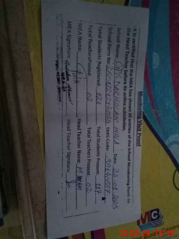 | EMIS Code: 38140887 | Name of School: GPS DARHALAN WALA | |||