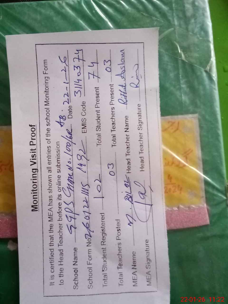 | EMIS Code: 31140374 | Name of School: GGPS CHAK NO. 100/6-R AB | |||
