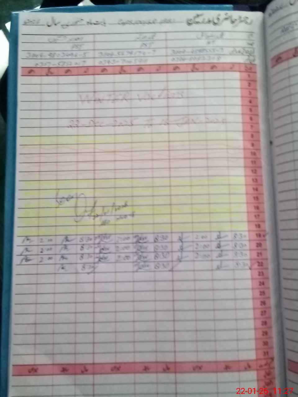 | CNIC | Full Name | Designation | R/C | Absence During Last Calender Month |