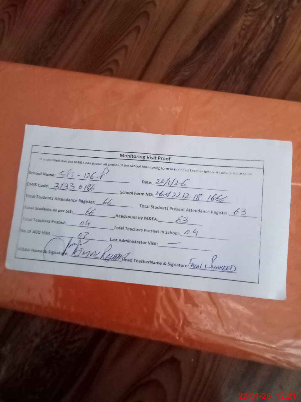 | EMIS Code: 31330186 | Name of School: GPS CHAK NO. 126/P | |||
