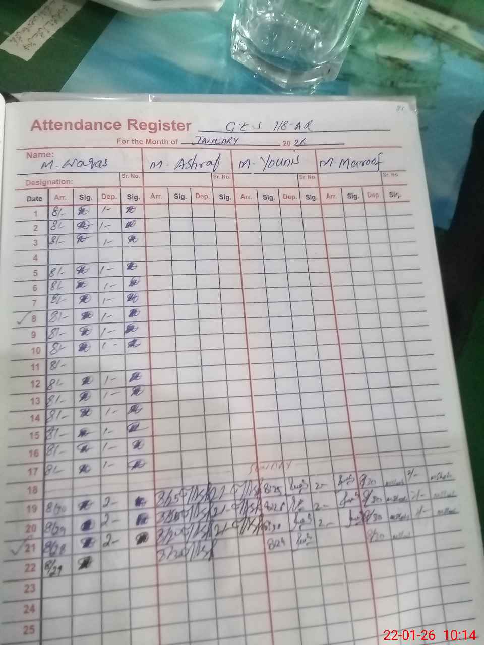 | Monitoring Date: 22-01-2026 | Start Time: 22-01-2026 09:34 AM | End Time: 22-01-2026 10:39 AM | Name of MEA: MU**** SH**** | |