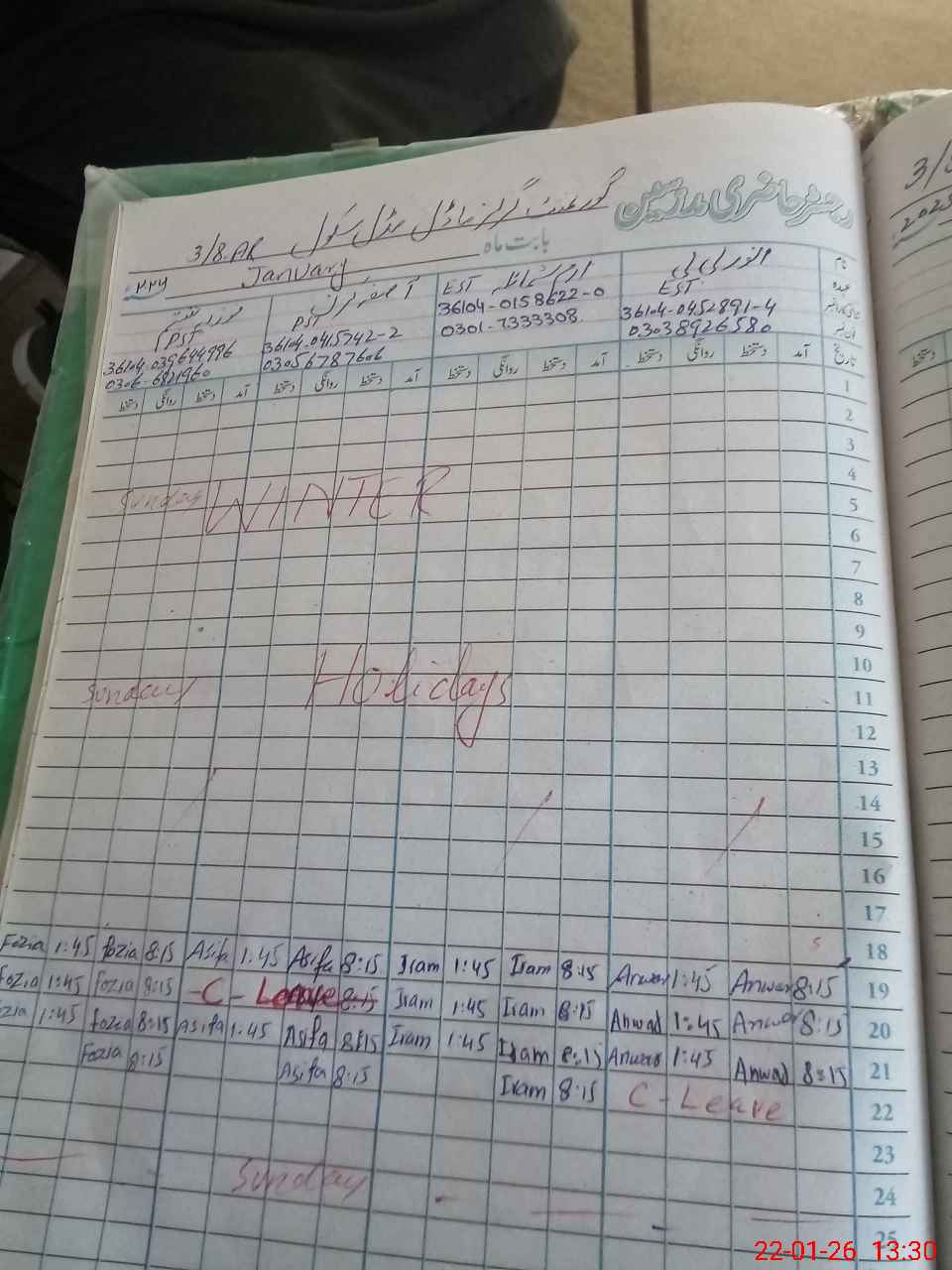 | CNIC | Full Name | Designation | R/C | Absence During Last Calender Month |