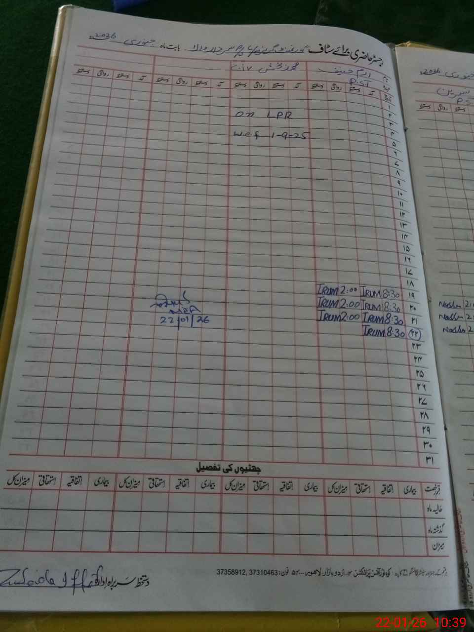 | CNIC | Full Name | Designation | R/C | Absence During Last Calender Month |