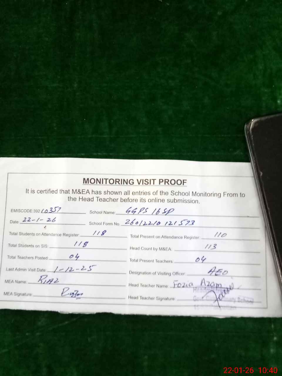 | EMIS Code: 39210357 | Name of School: GGPS 16 SP | |||
