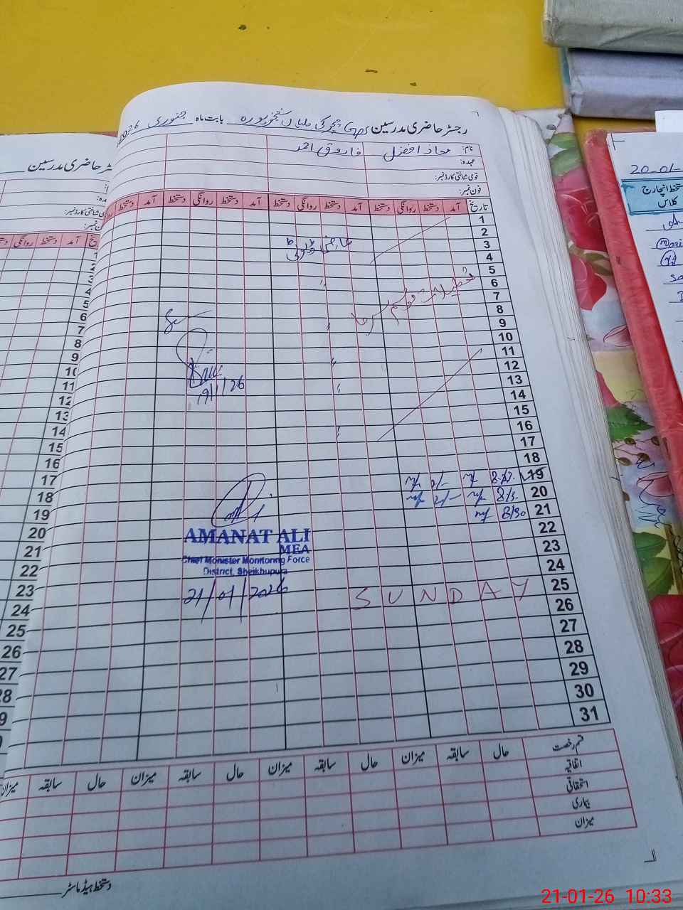 | CNIC | Full Name | Designation | R/C | Absence During Last Calender Month |