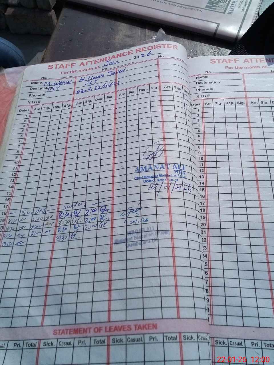 | 35**** | Mu**** Wa**** | ESE Science | Contract | 0 | 0 | 0 | 0 | 0 | 0 | 0 | 0 | 0 | Absent (Un-Authorized) |