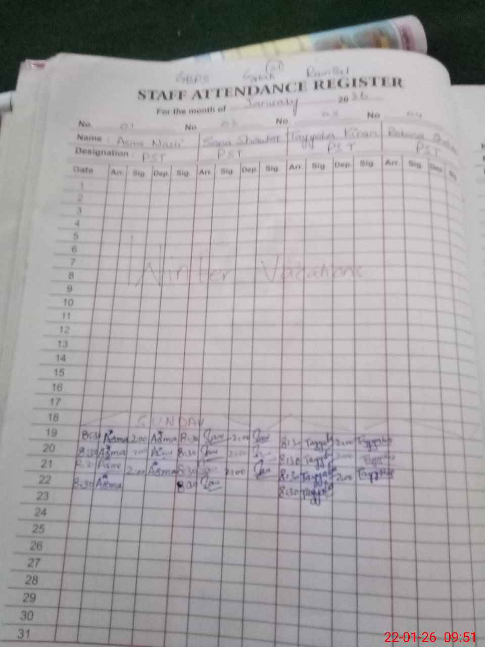 | Name: As**** Na**** Designation: (School Headmaster's/Headmistress's) PST Phone/Cell Number: 03**** |