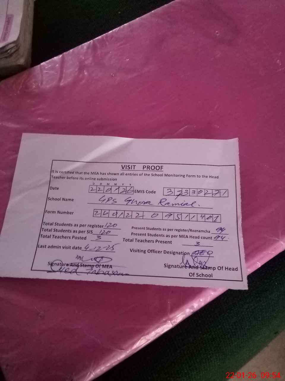| EMIS Code: 37330271 | Name of School: GPS GOHRA RAMIAL | |||