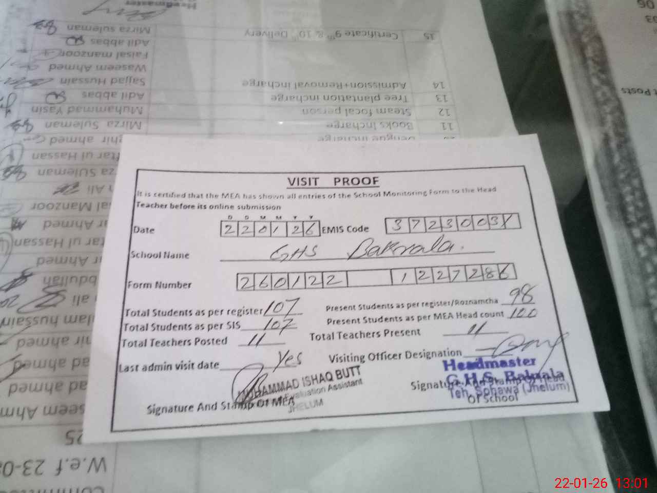 | EMIS Code: 37230031 | Name of School: GHS BAKRALA | |||