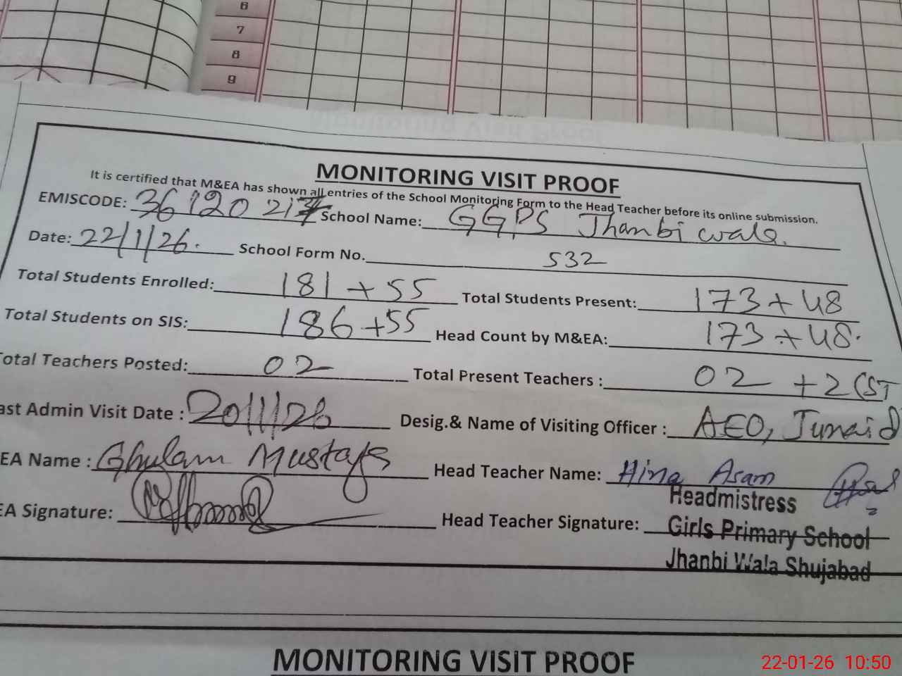| EMIS Code: 36120217 | Name of School: GGPS JHANBI WALA SHUJABAD DISTT. MULTAN | |||