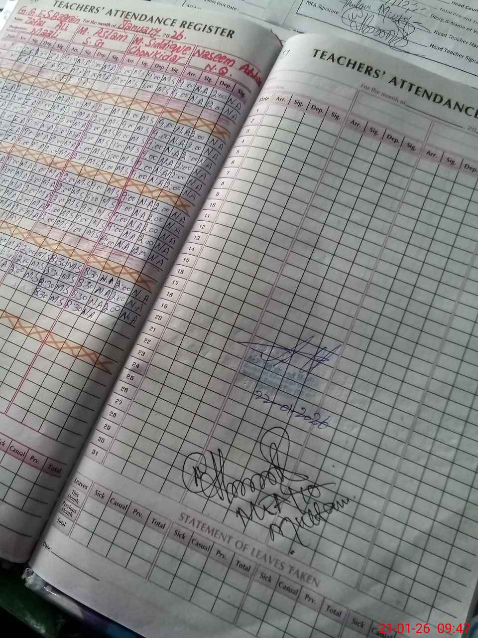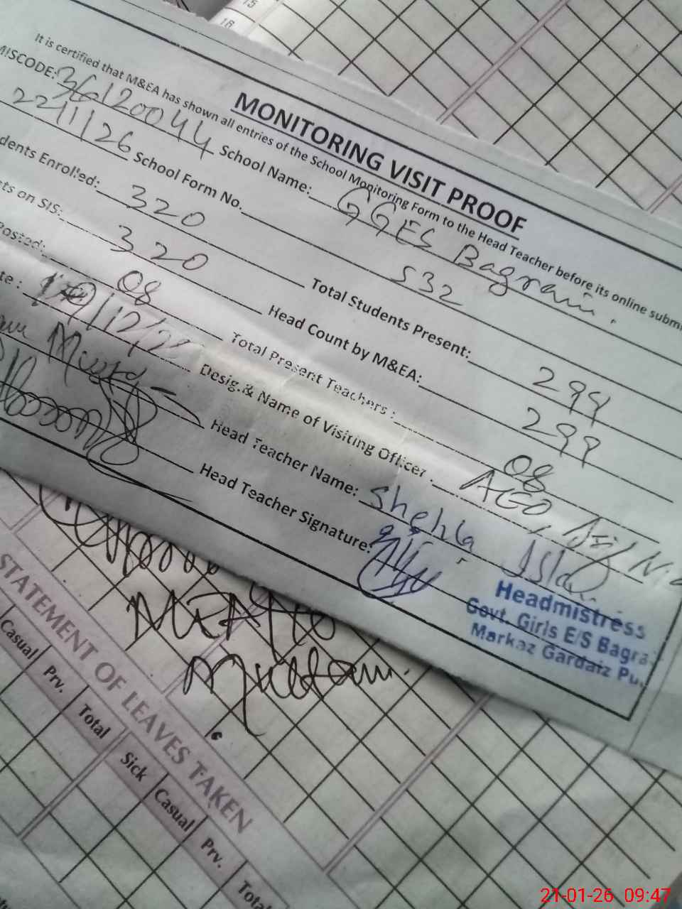 | Attendance Register | Head Teacher | MEA with School | Visit Proof |