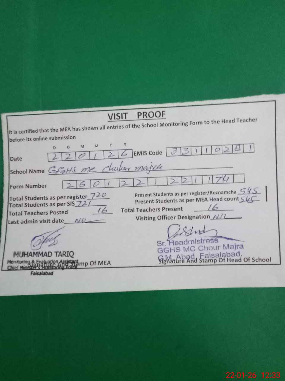 | EMIS Code: 33110281 | Name of School: GGHS MC CHOR MAJRA G.M.ABAD | |||