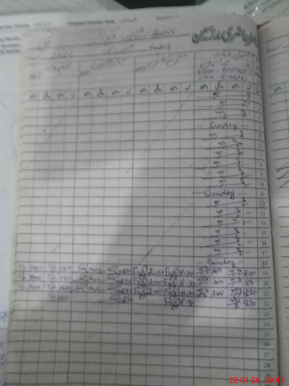 | CNIC | Full Name | Designation | R/C | Absence During Last Calender Month |
