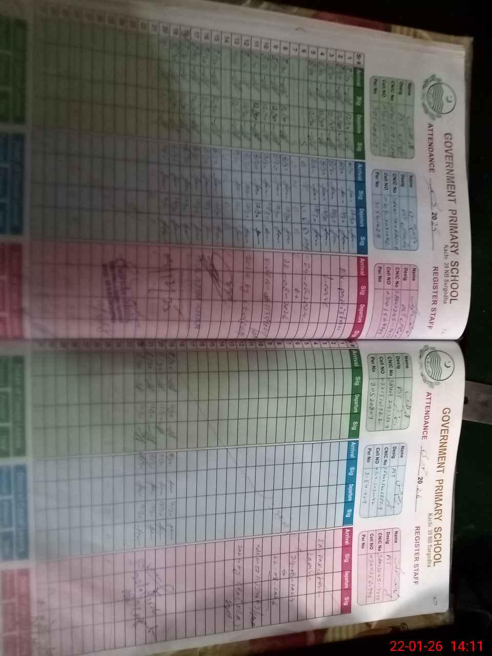 | CNIC | Full Name | Designation | R/C | Absence During Last Calender Month |