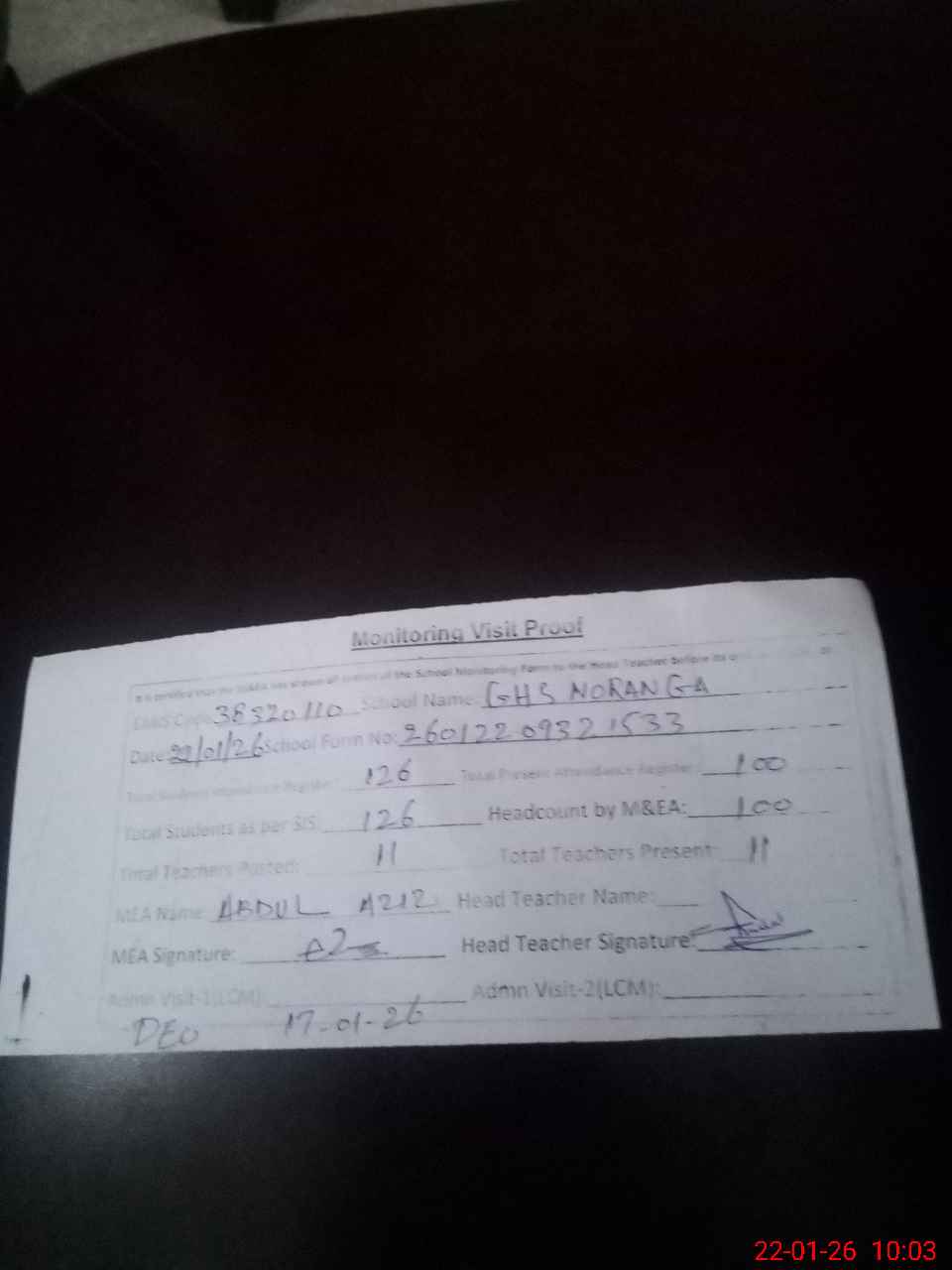 | EMIS Code: 38320110 | Name of School: GHS NORANGA | |||
