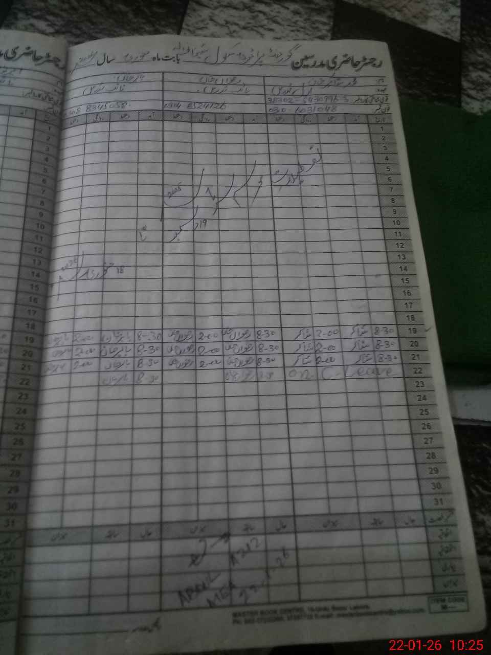 | CNIC | Full Name | Designation | R/C | Absence during last cal. month |