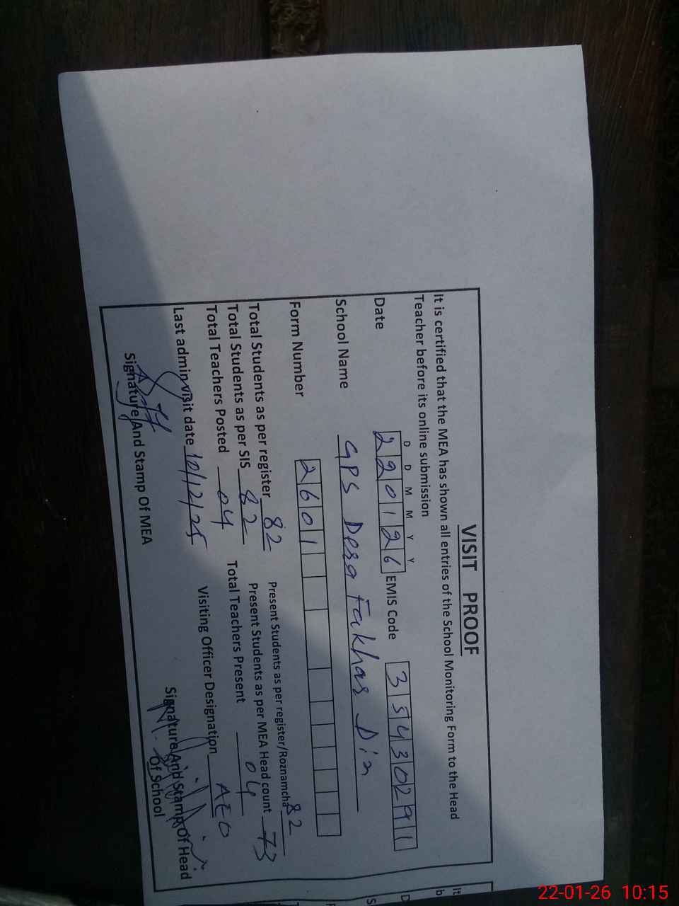 | EMIS Code: 35430291 | Name of School: GPS DERA FAKHAR UD DIN | |||