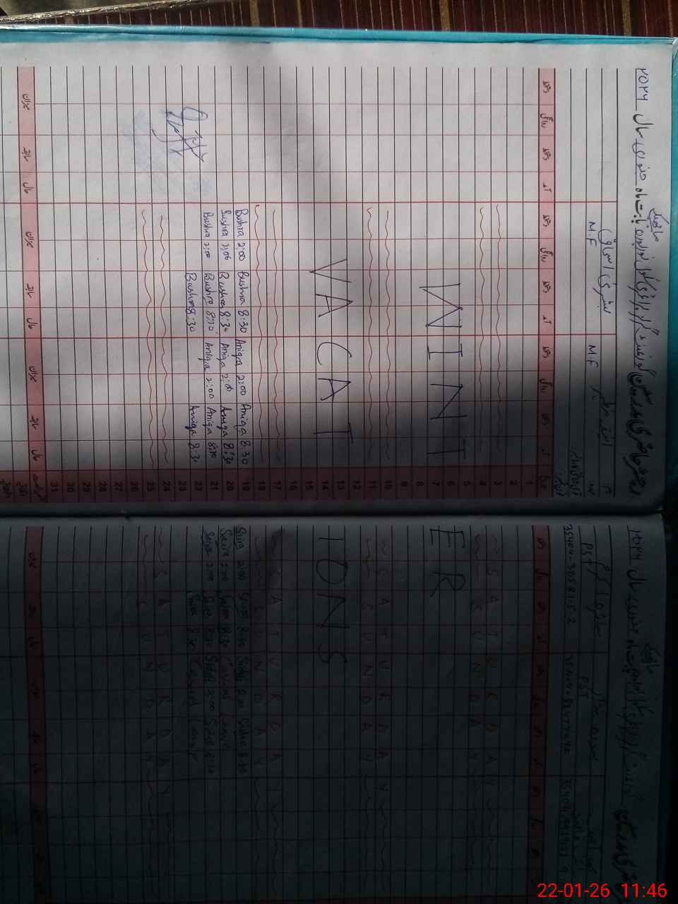 | CNIC | Full Name | Designation | R/C | Absence During Last Calender Month |