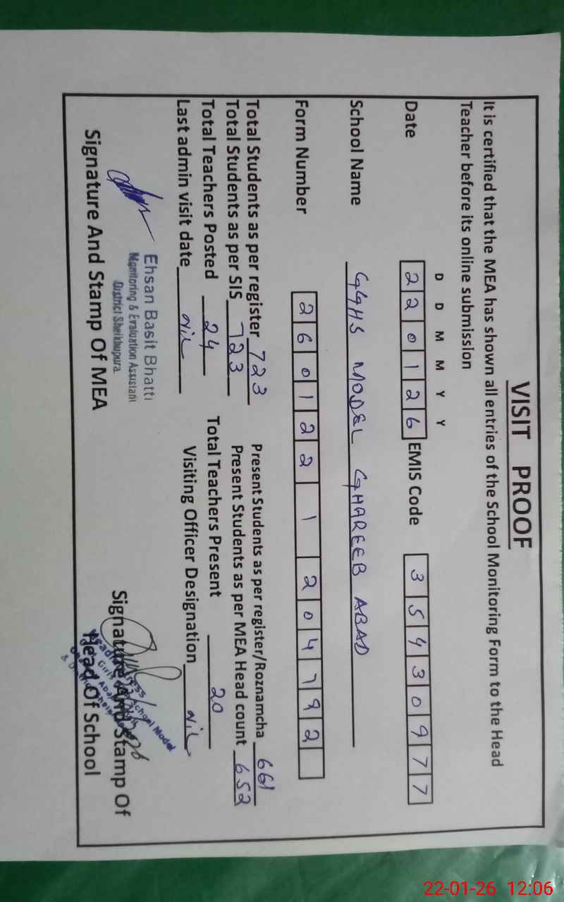 | EMIS Code: 35430977 | Name of School: GGHS MODEL GHAREEB ABAD | |||