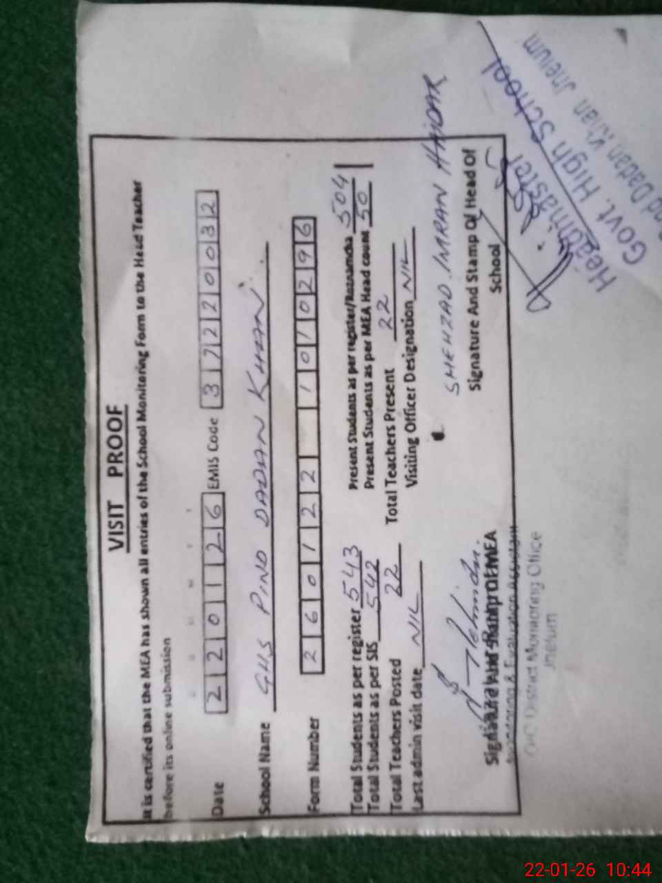 | EMIS Code: 37220032 | Name of School: GHS PIND DADAN KHAN | |||