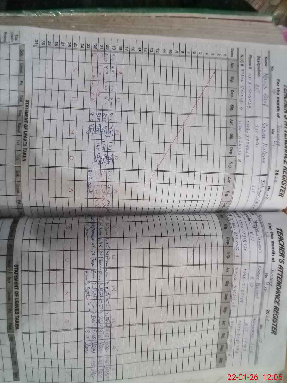| CNIC | Full Name | Designation | R/C | Absence During Last Calender Month |