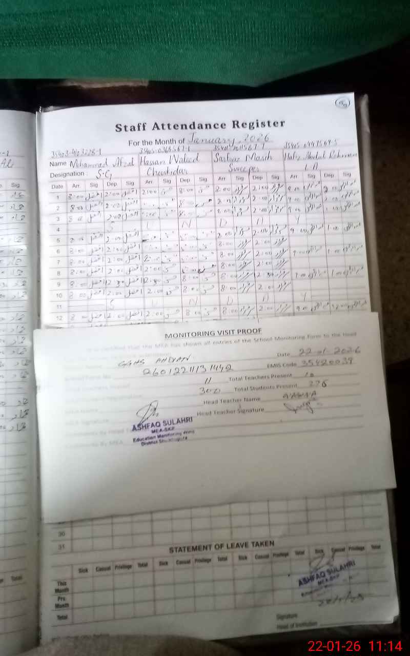 | Attendance Register | Head Teacher | MEA with School | Visit Proof |