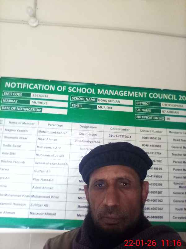 | District: SHEIKHUPURA | Tehsil: MURIDKE | Markaz: SECONDARY-WING | Level: High | |