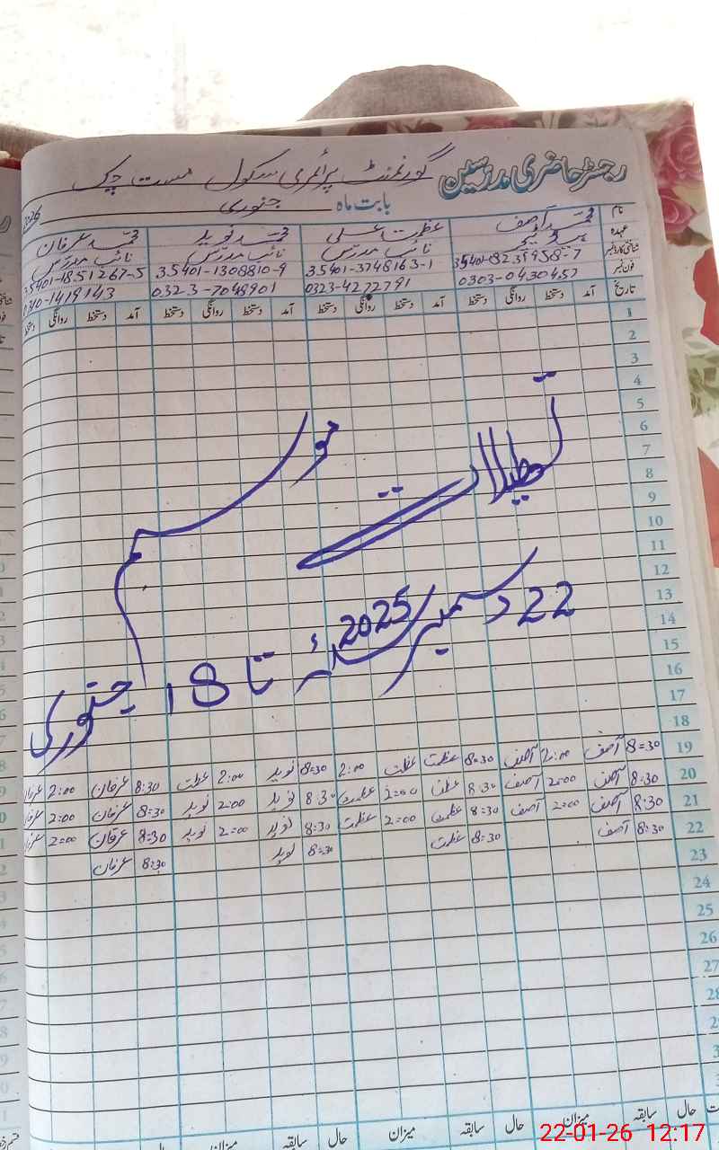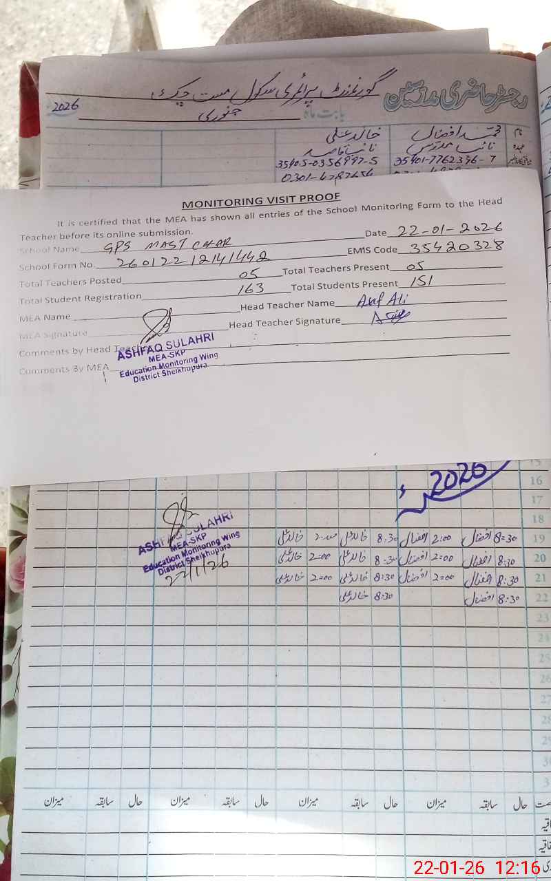 | EMIS Code: 35420328 | Name of School: GPS MAST CHAK | |||