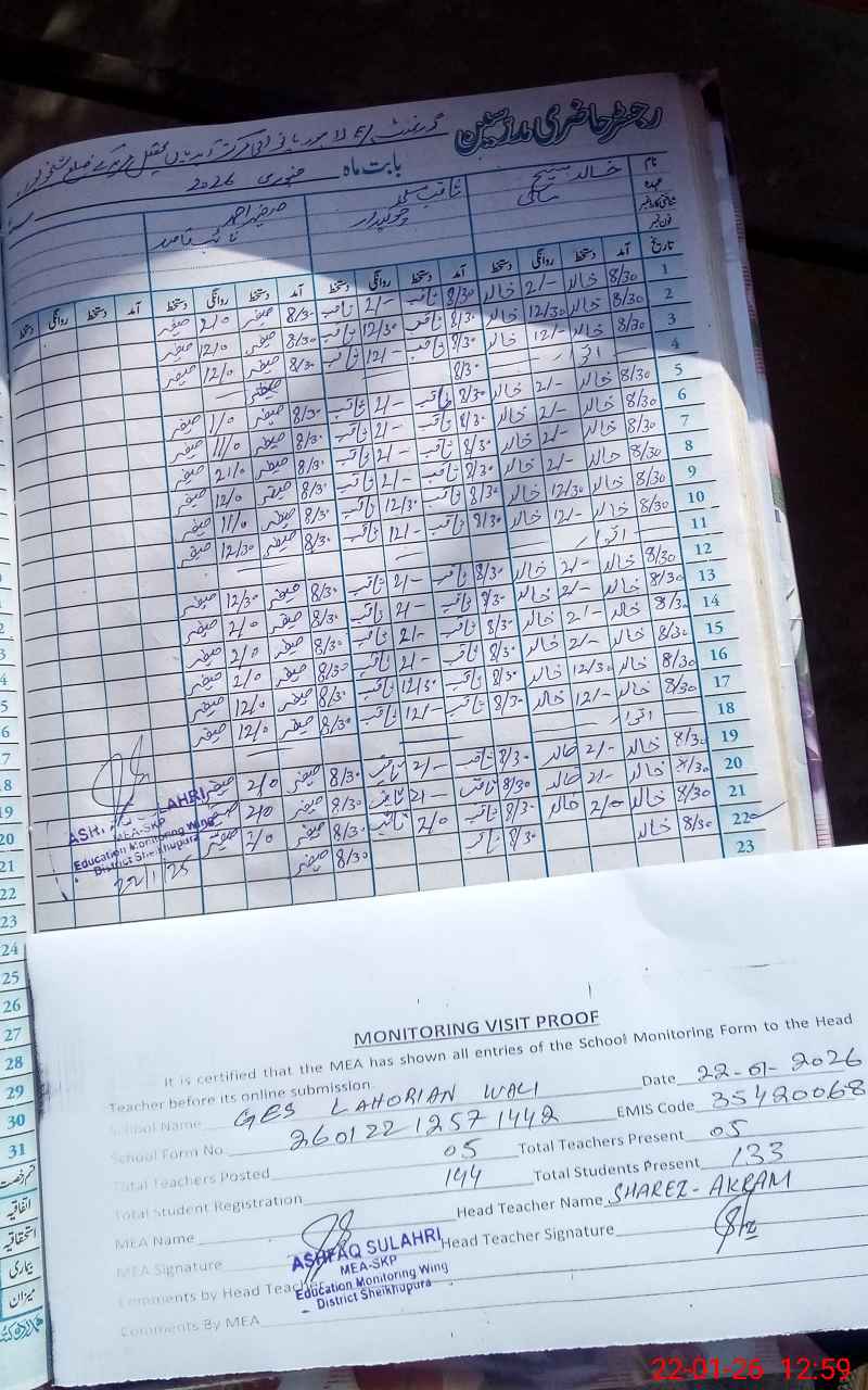 | EMIS Code: 35420068 | Name of School: GES LAHORIAN WALI | |||