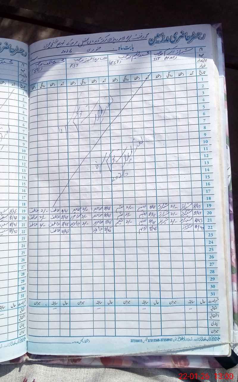 | CNIC | Full Name | Designation | R/C | Absence During Last Calender Month |