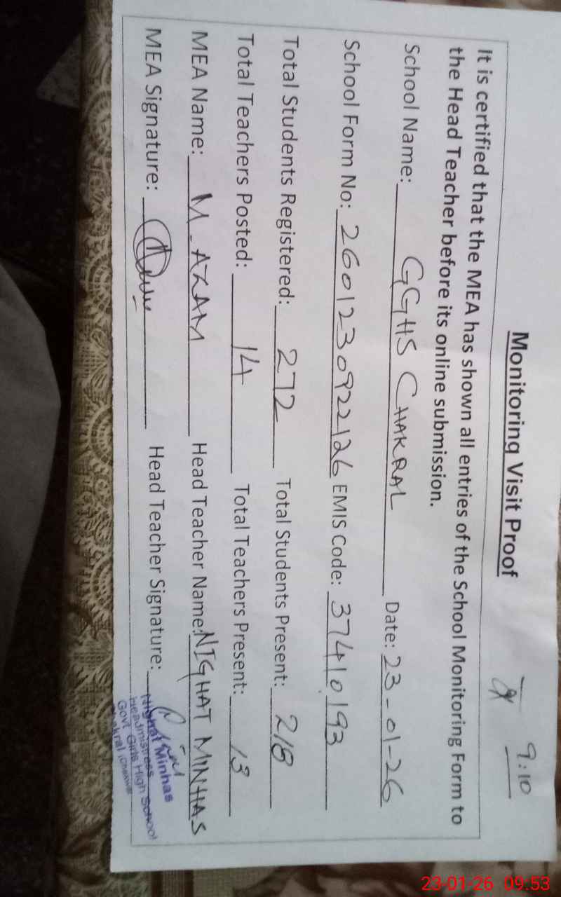 | EMIS Code: 37410193 | Name of School: GGHS CHAKRAL | |||