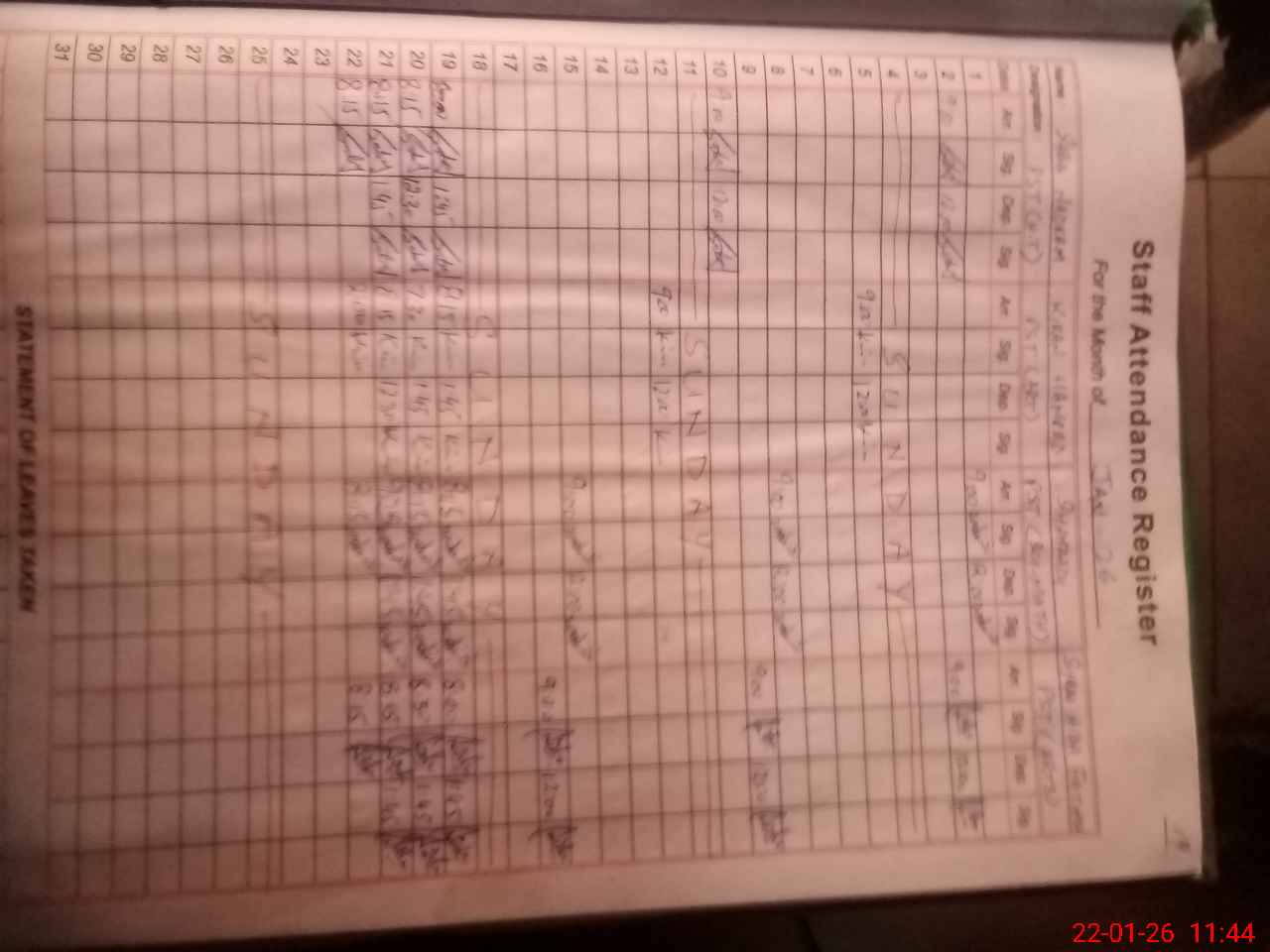 | CNIC | Full Name | Designation | R/C | Absence During Last Calender Month |