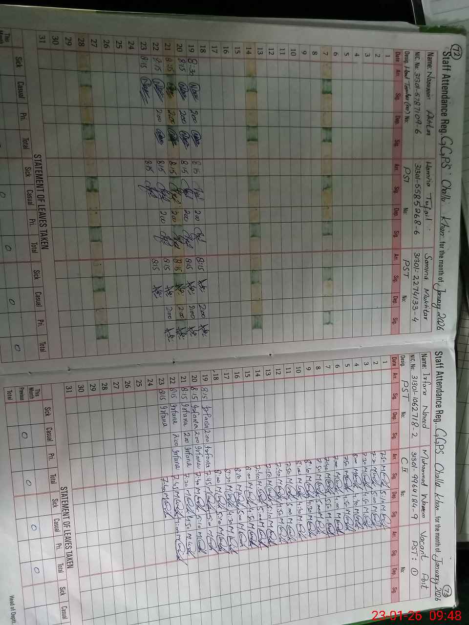 | CNIC | Full Name | Designation | R/C | Absence During Last Calender Month |