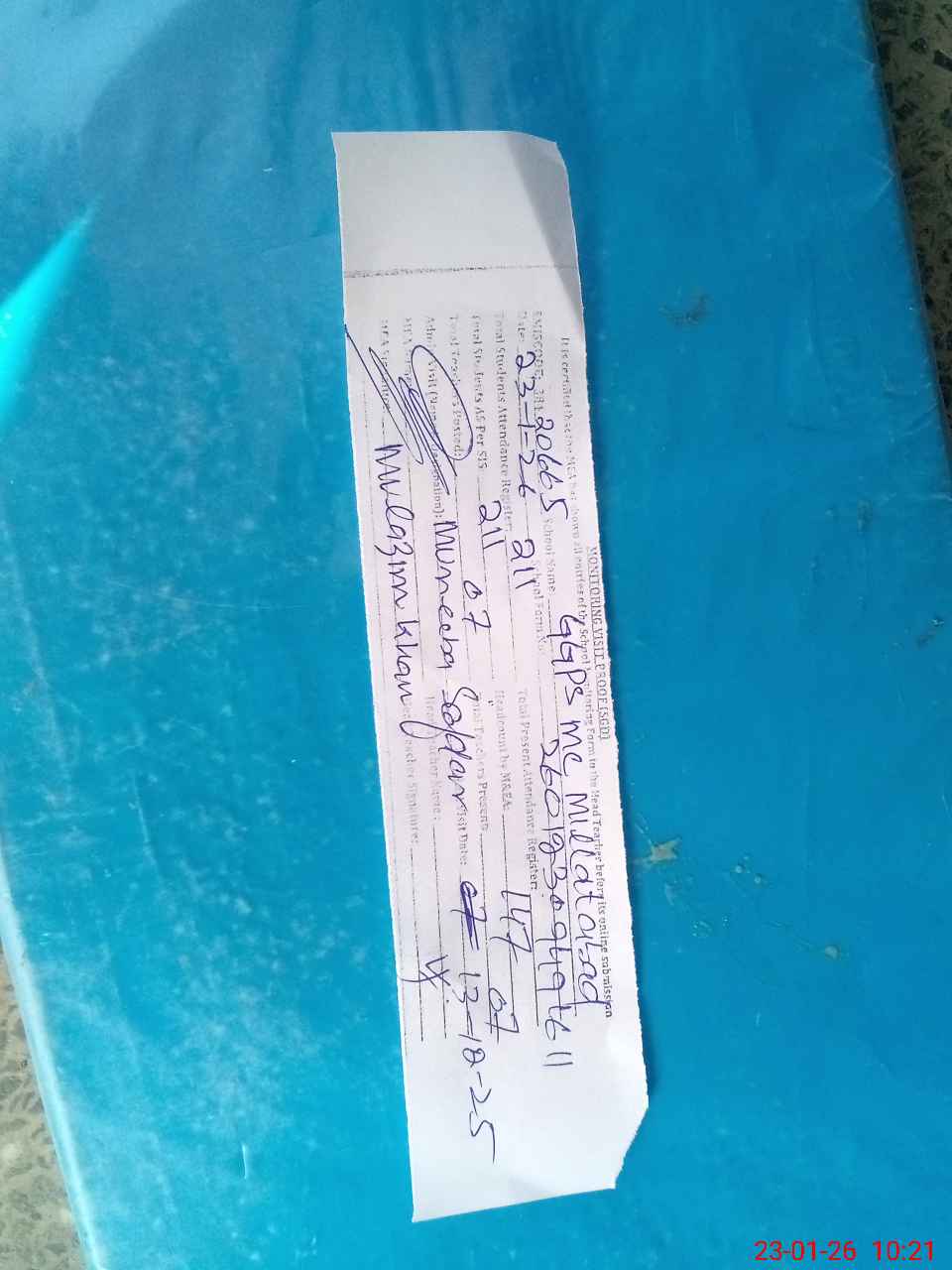 | Monitoring Date: 23-01-2026 | Start Time: 23-01-2026 09:49 AM | End Time: 23-01-2026 10:22 AM | Name of MEA: MU**** KH**** | |