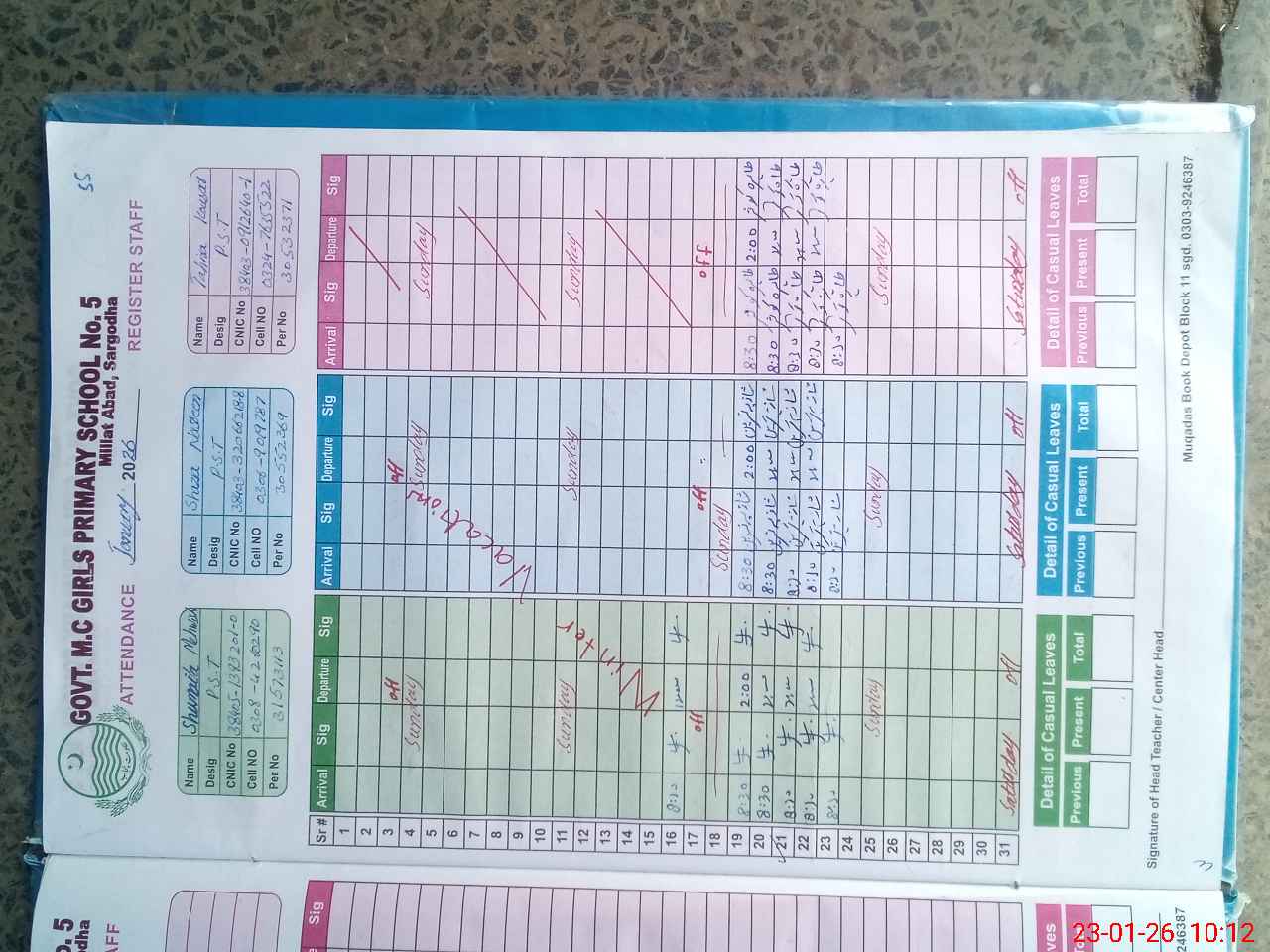 | 38**** | Qa**** Bi**** | NAIB QASID | 0 | 0 | 0 | 0 | 0 | 0 | 0 | 0 | 0 | Absent (Un-Authorized) | |