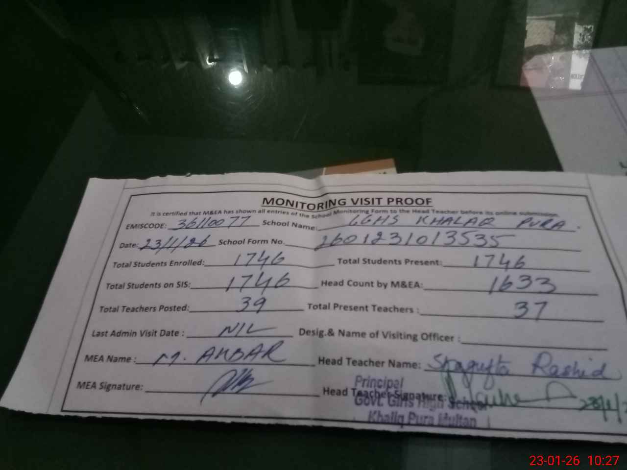 | EMIS Code: 36110077 | Name of School: GGHS KHALIQUE PURA KHALIQUE PURA | |||