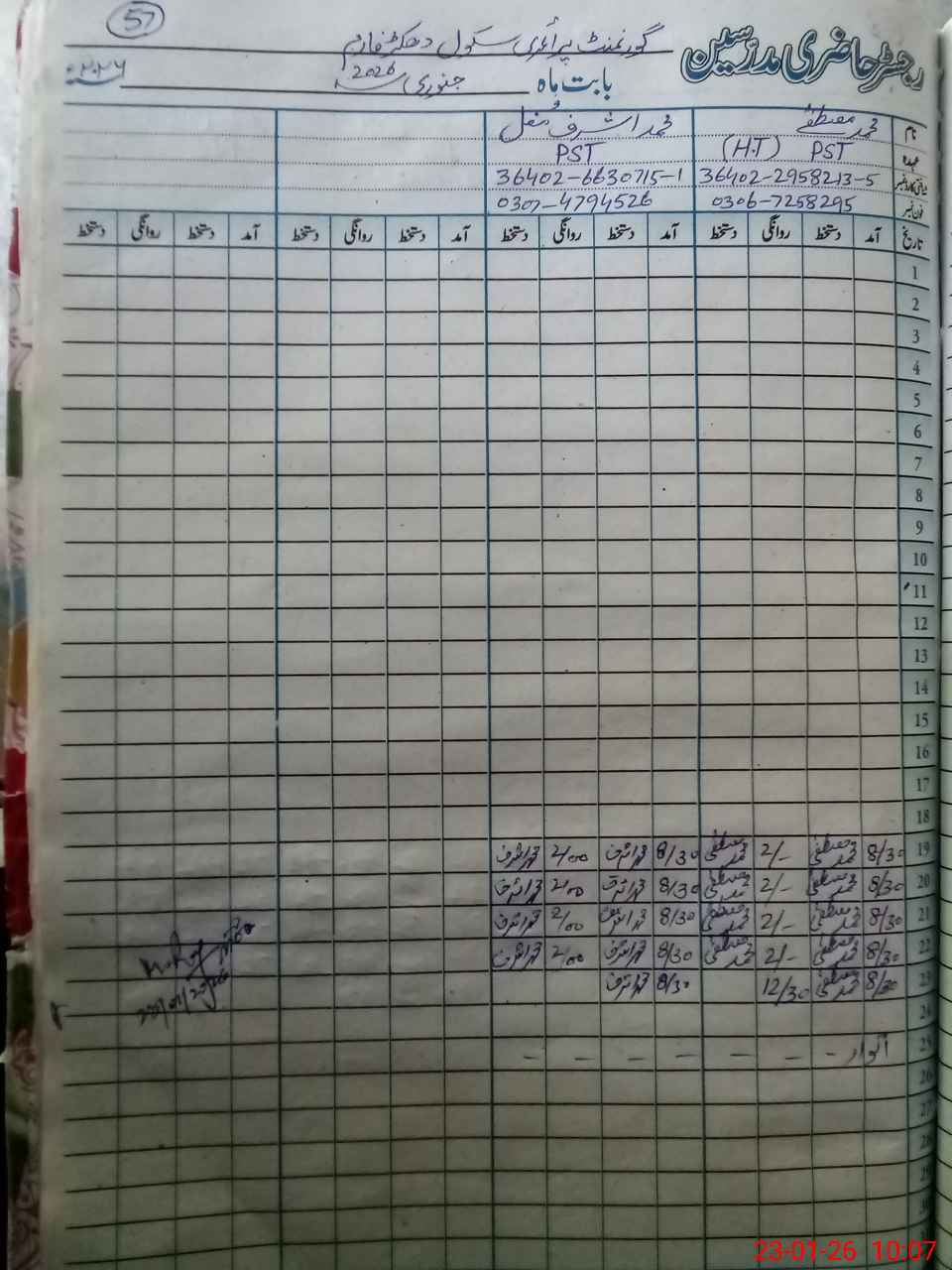 | Name: MU**** MU**** Designation: (School Headmaster's/Headmistress's) PST Phone/Cell Number: 03**** |