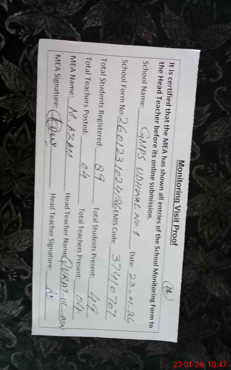 | EMIS Code: 37410707 | Name of School: GGPS UDHWAL 1 | |||